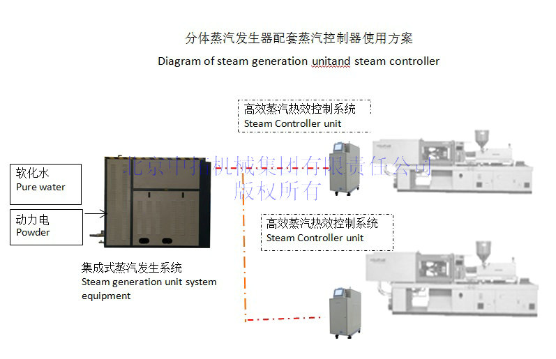 Dual-mode,For double-color injection machine. Special program control 2 sets steam. Water and Air.